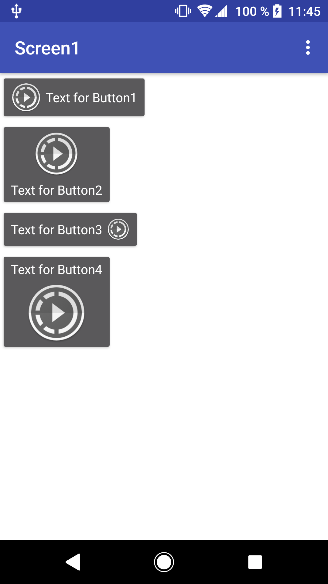 in similar you can use clickable arrangement and label for text and a image which will be the icon. you can place the image left/right
