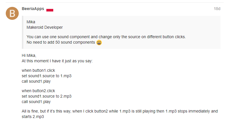hi, please i need help. i make an app with clickeable images, when i make click, each image, play a different sound.