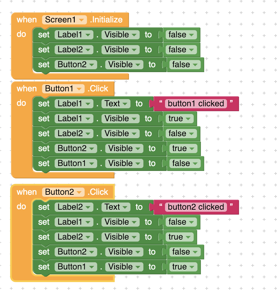 two images uploaded to assets (pngs), manually set them to 45/45 pixels on each of two buttons. Set two buttons and two labels. Error also occurs if you leave the settings to automatic.