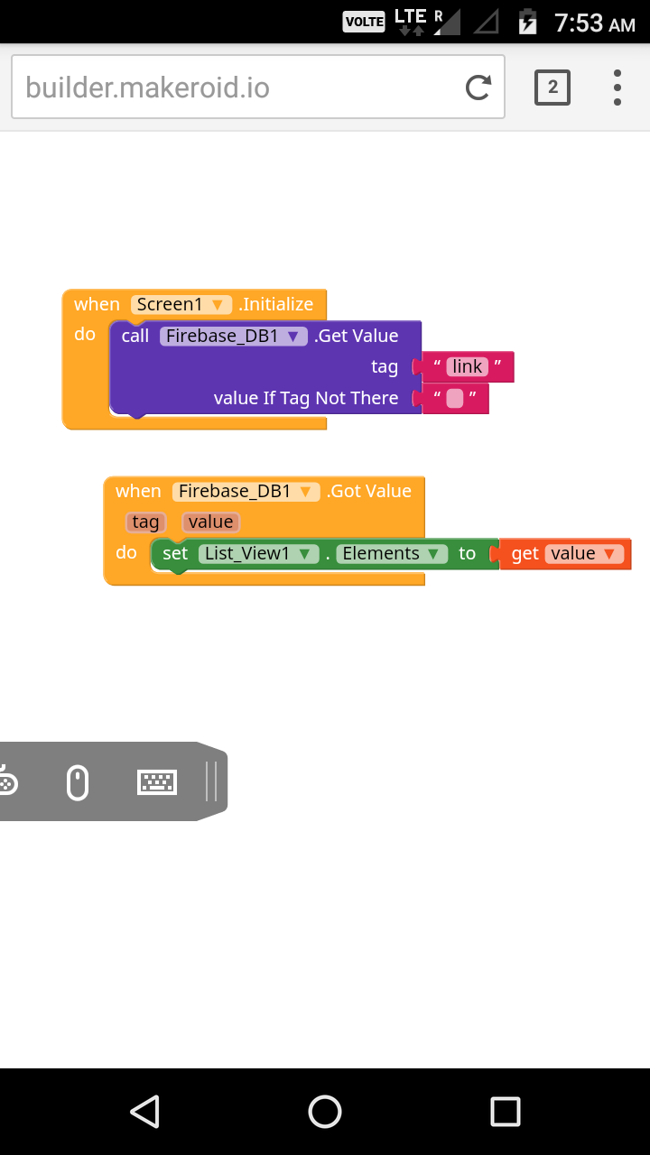 You can firebase DB component and select “get all tags” block and select “set elements” block from list view and the put the get all tags blocks in set elements