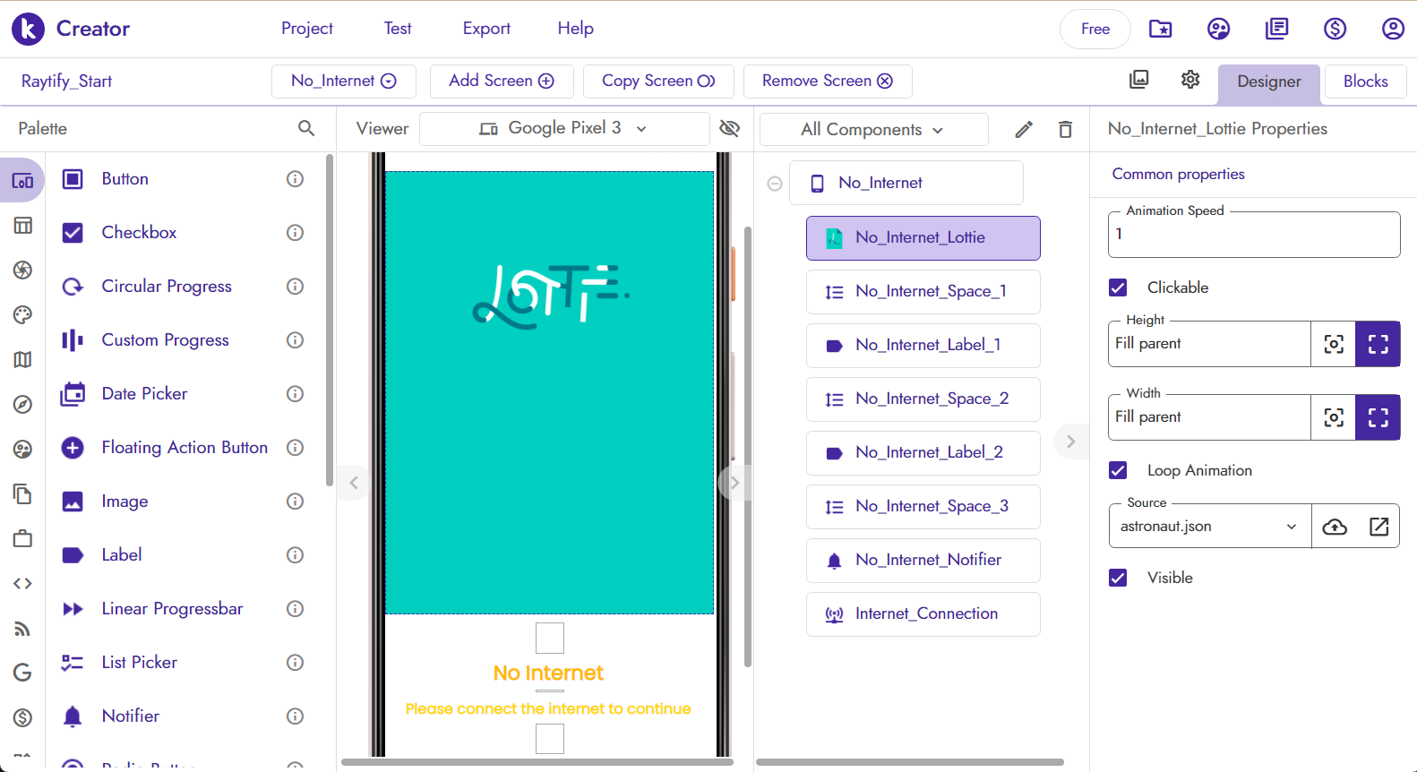 Please check the lottie file in No_Internet screen, It is not appear in apk…