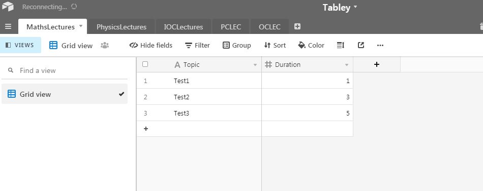 I see that you have set the table name to IOCLectures and trying to retrieve value of the column Duration which is in the MathsLectures table.