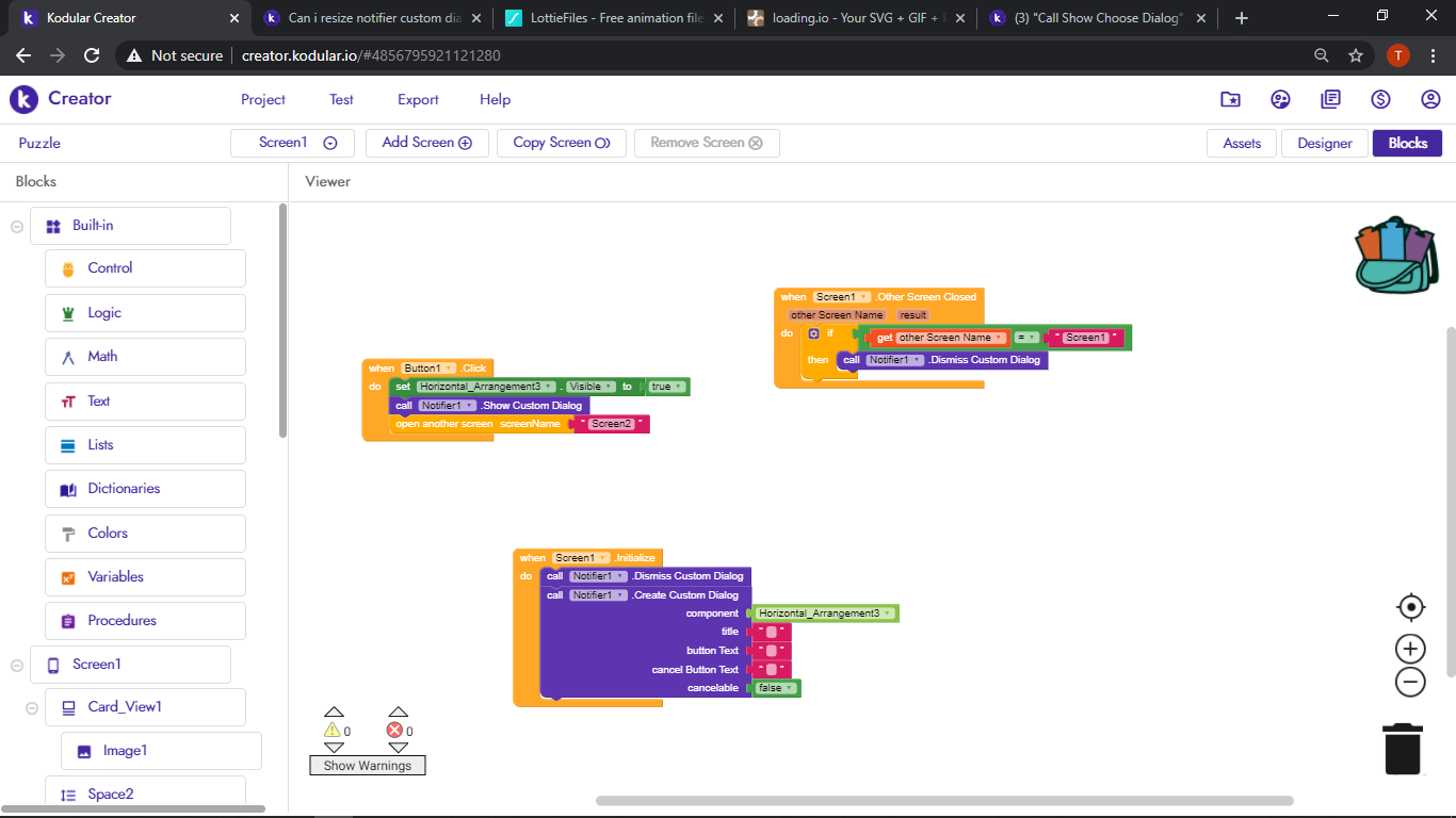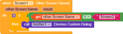 And you are using OtherScreenClosed block wrongly as screen1 is your current screen as well!