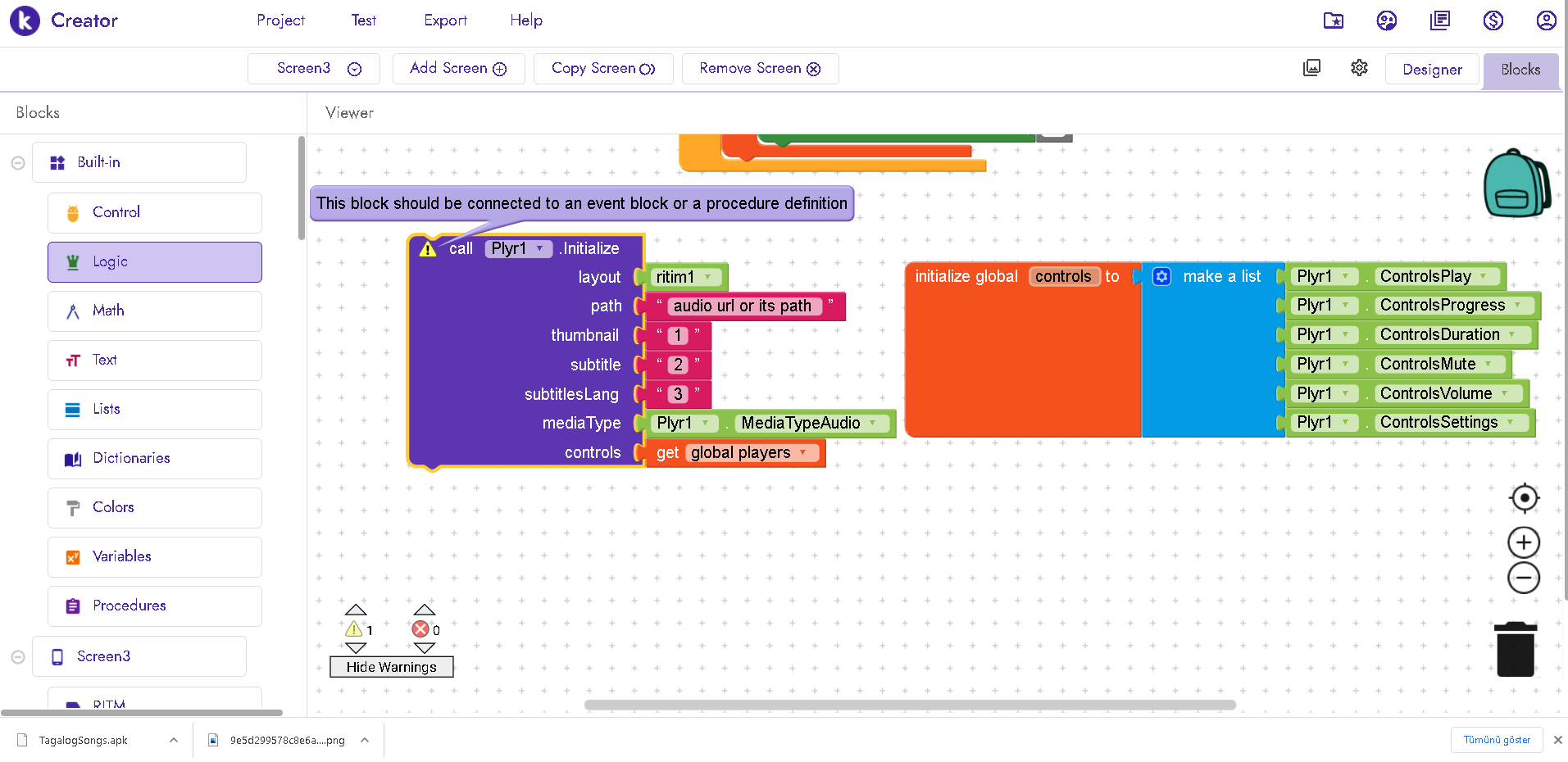 You have to attach the initialize block where when you have to start the music for example in an event when button click ,etc.