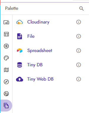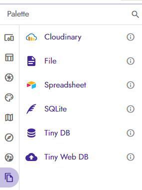 Dears, I worked on an importd aia file for many days alredy, it has SQLite extension, but, in palette of “storage”, I can not find SQLite like bellow picture shown.