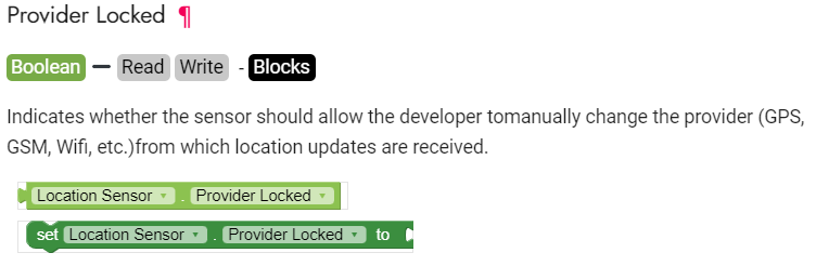 I’ve set up a label to show the value of the “Provider Locked” property at the start of the app (by placing the corresponding block in the screen1 initialization event), and it shows “false” every time.