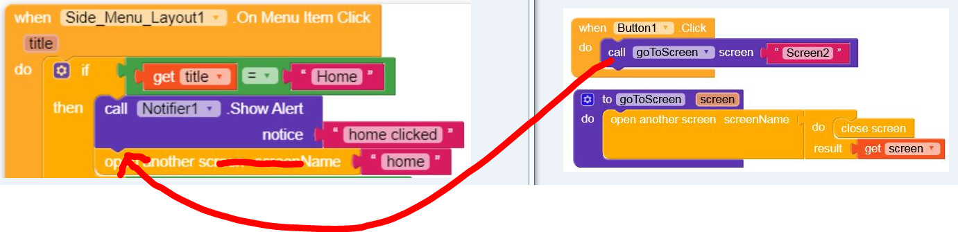 I created a sidebar menu, added icons, and everything works well except when I click on the menu. The notifier fires up and pops an alert but “open screen” doesn’t work. It won’t take me to the new screen. I have been looking for answer for 2 days but can’t seem to find any.