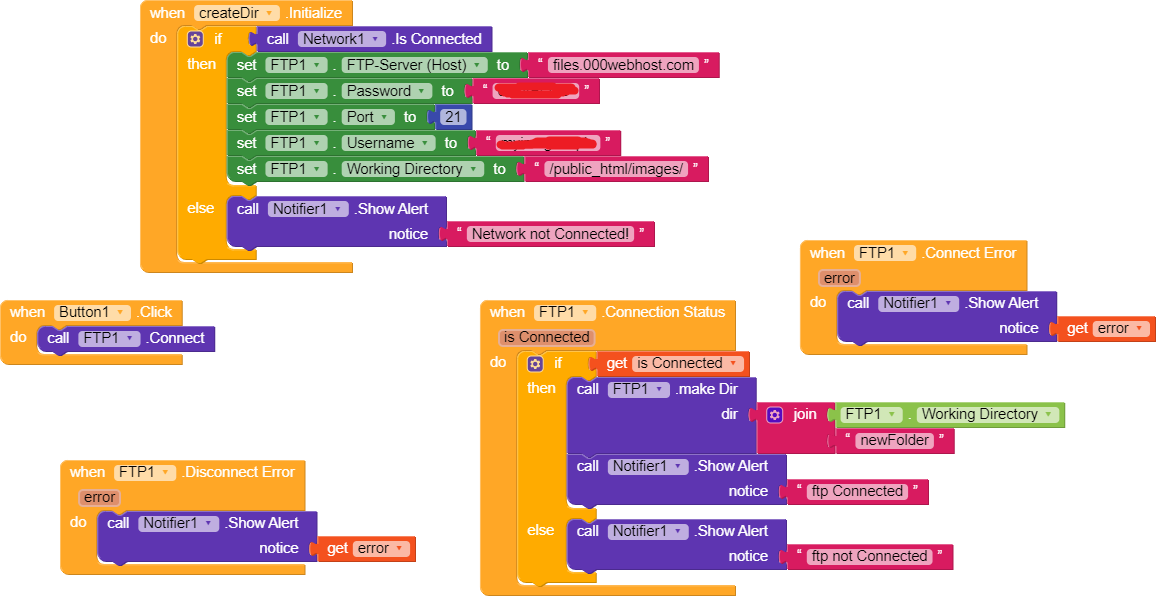 file uploading works fine with 000webhost but i cant create directory or list files using ftp component. Help plz