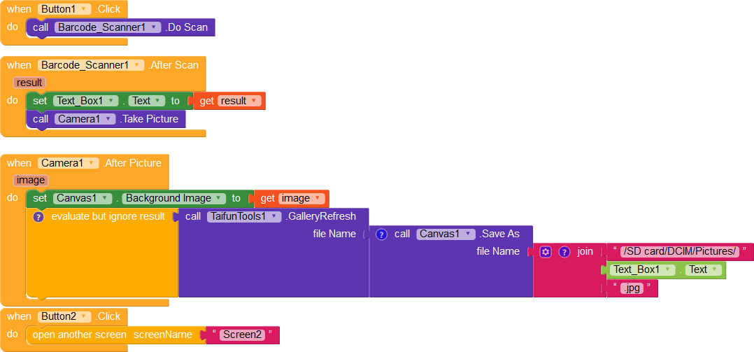 in sceen 2 when i click button 1, picture not display ??? help me plz???