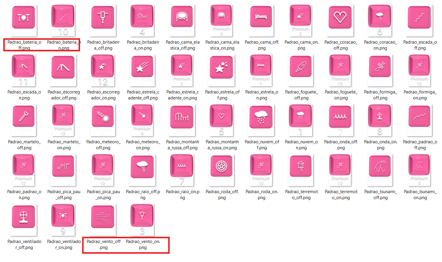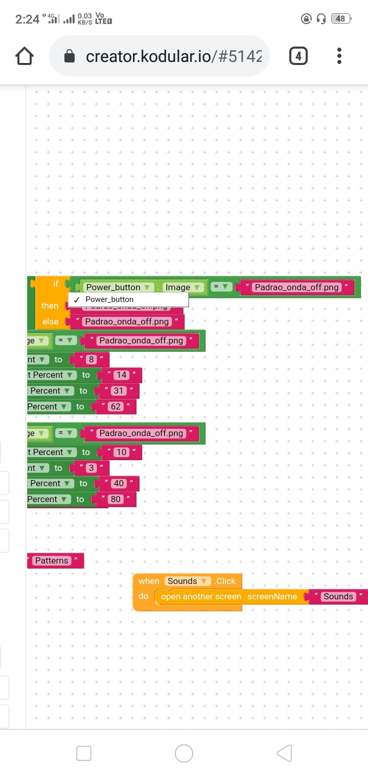 This is the aia. The problem is in patterns screen. There are pattern buttons in the vertical arrangement. Their names are “Padrao_" and the corresponding pictures in assets are "Padrao_on" and "Padrao****_off”.