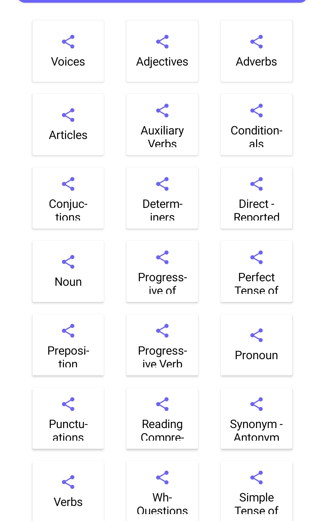 horizontal arrangement > 3 card views > vertical arrangement > 2 labels …1 for icon 1 for name…