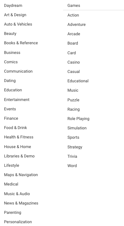 As I said in an early post in this topic, can you create sub-categories for games next to app sub-categories?