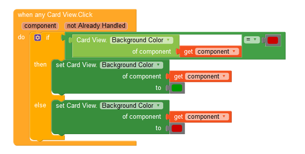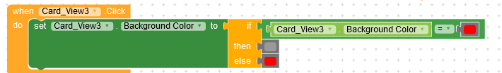 hello friend, i want to set when card view clicked, change to red but when clicked again, change to grey, here is my block: