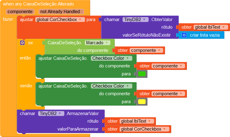 I can’t understand what are you trying to code as it is in a different language but I think you have 2 colours and you want them to change with the click of a checkbox and you also want to store the value of colour so that it remains same. To do this you can use a tiny DB component…