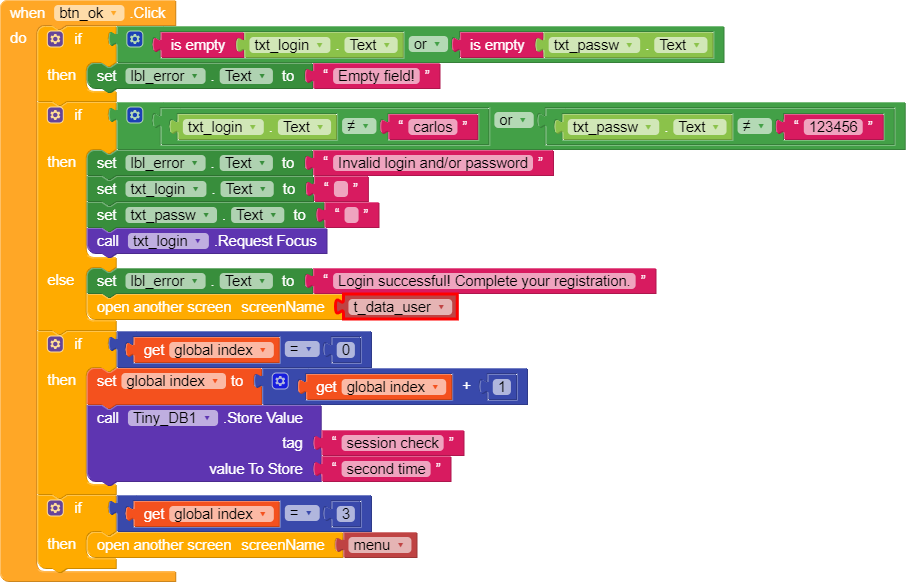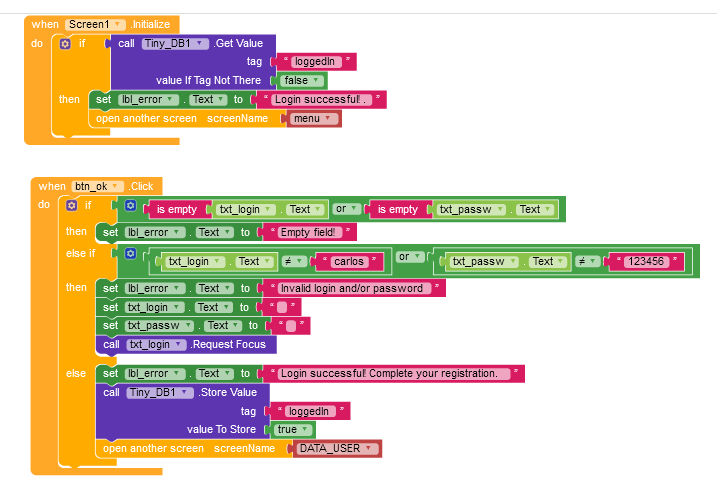 Guys, I want to thank everyone for helping me. I just made one change. After completing the Data_User, the screen returns to the login. When he logs in he goes straight to the Menu. Now there’s a question. Suppose he uninstalls the app and installs it again. How to prevent it from going to the Data_User?