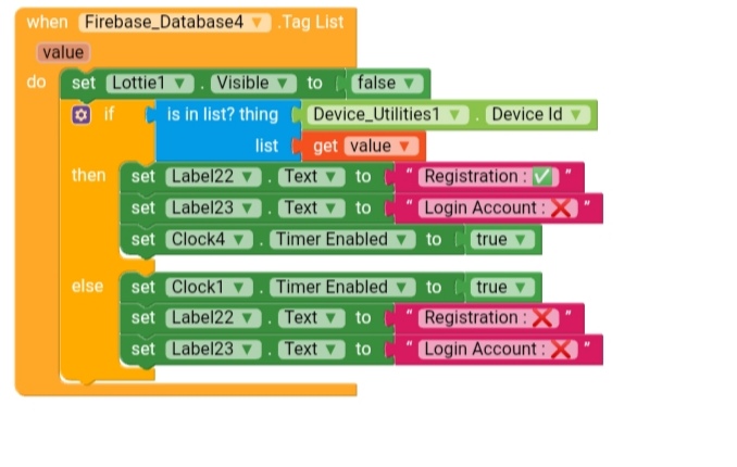 Then for your firebase, just get tag list, then in the ‘when tag list get’ block use a ‘for each item in list’ block where the list is value and compare each item in the for loop with your generated code. If there is a repeated one, just generate another code.