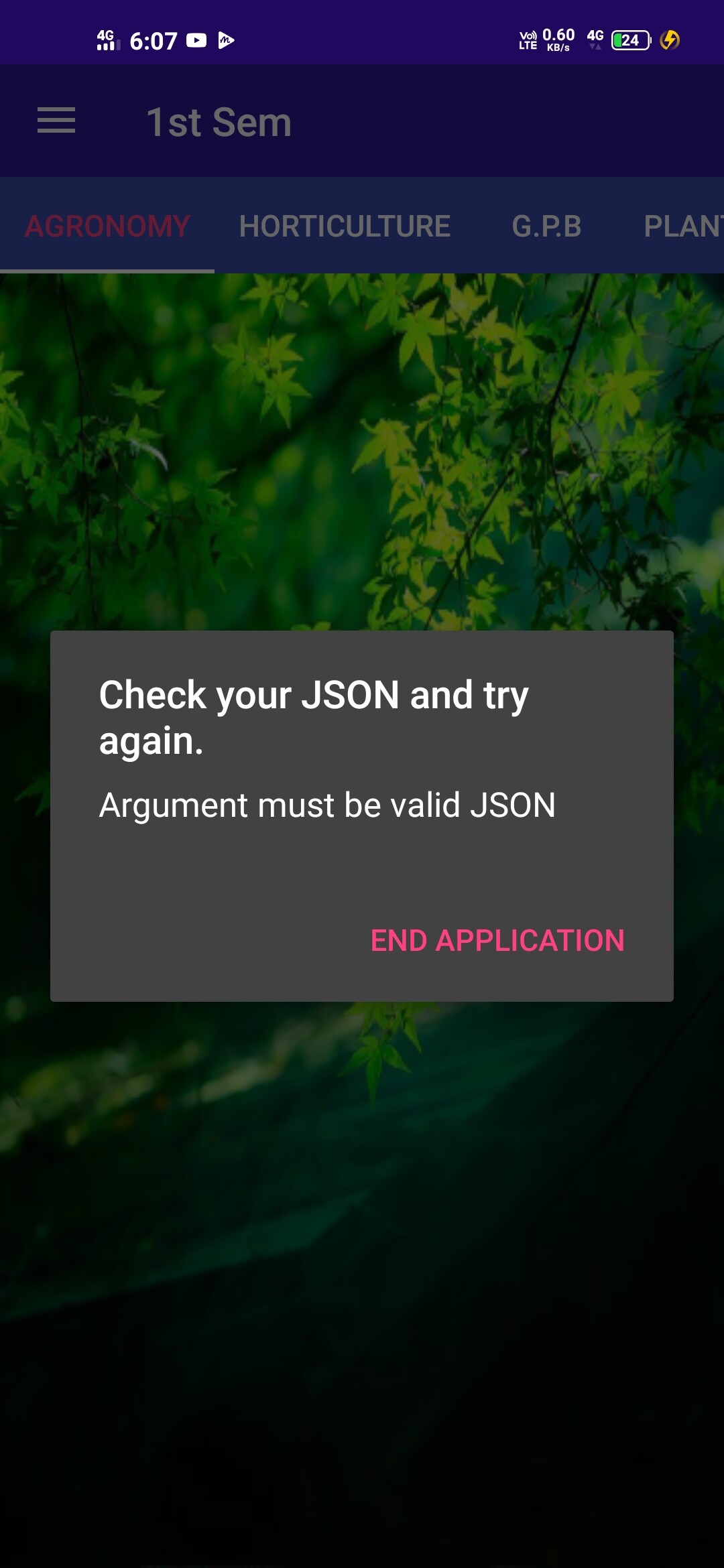 I am Open App This Problem Is Showning Check your JSON and try again . Argument must be valid JSON…