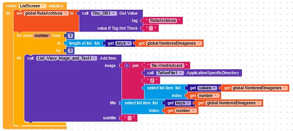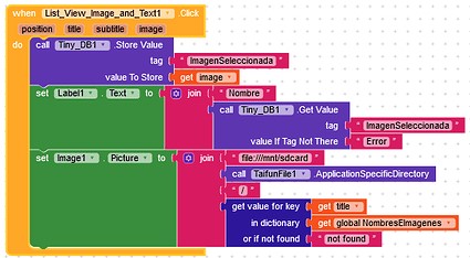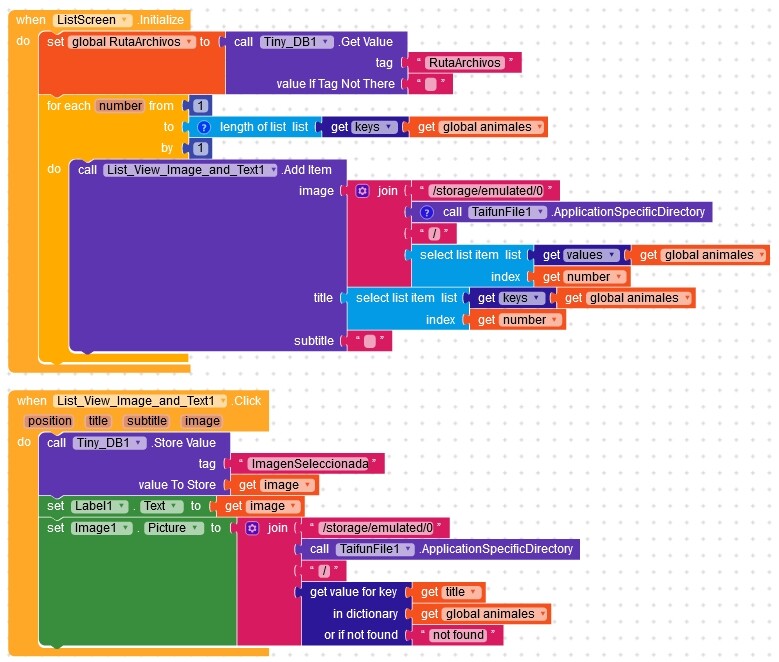 This are the block to generate the list view with image and the one to select the item. If the /storage/emulated… is not added, the image is not saved.