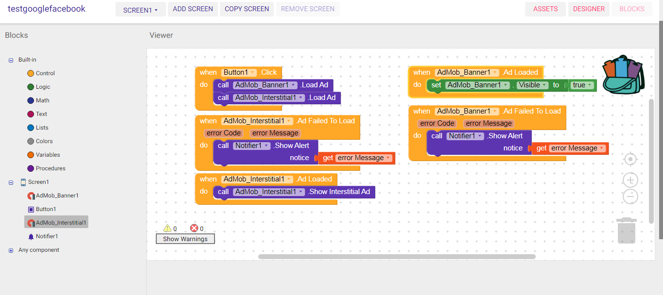 Check this aia and screenshot for setup your ads only change ads id export app and check your ads are working and if you use timer on the ads so use with the button for show the ads but you need the load ads in button