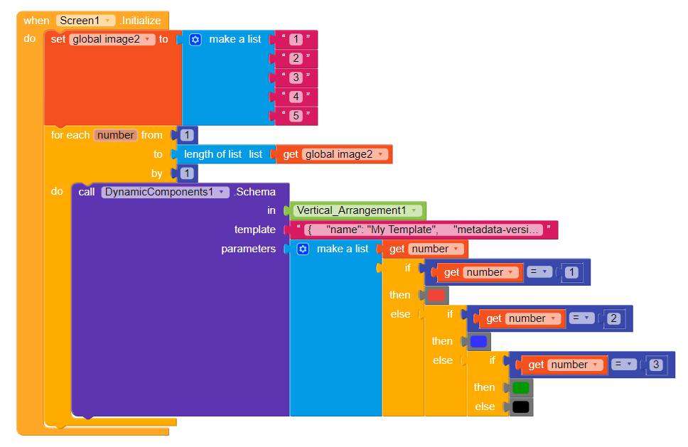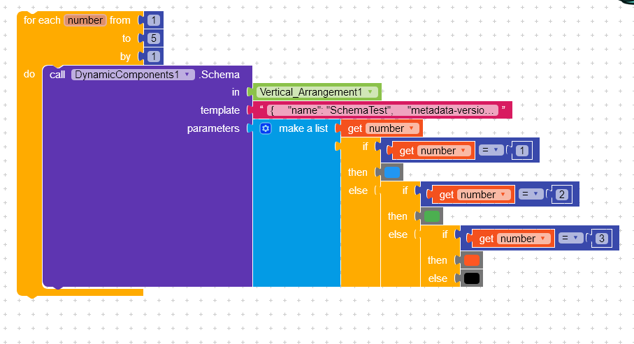 Add For Each Number From 1 to 3 block and under it setcolor.labelText to your desired color list / a random color from the variable list.