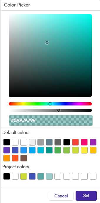 The colour picker also accepts three digit inputs. For example, ABC is implicitly converted to AABBCCFF