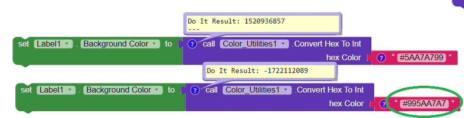 , photo was taken after color was already set . Also changing FF changes the transparency of the color for example if you replace FF with 99 , transparency is set to 50%