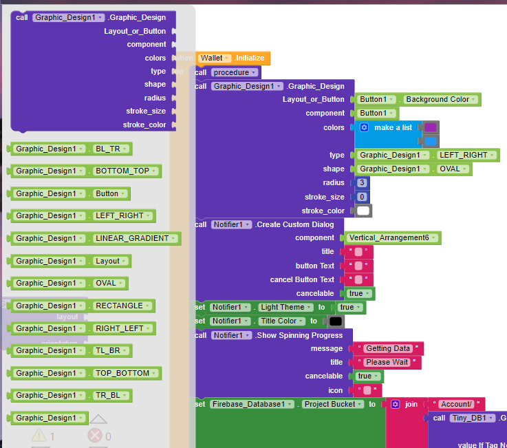 The arguments , [com.google.appinventor.components.runtime.HorizontalArrangement@c18513], [(-6543440 -14575886)], [LEFT_RIGHT], [OVAL], [3], [0], [-1] are the wrong number of arguments for Graphic_Design Note: You will not see another error reported for 5 seconds.