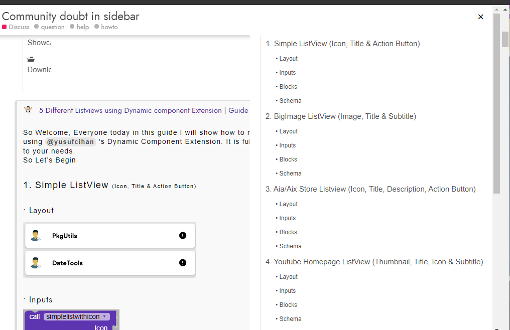 The question was how to make a sidebar or a table of contents in a topic.