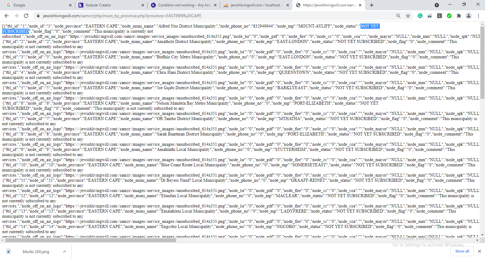 I need the text in the button to change depending on the NODE_STATUS ( if NOT YET SUBSCRIBED THEN SHOW subscribe and visa a versa