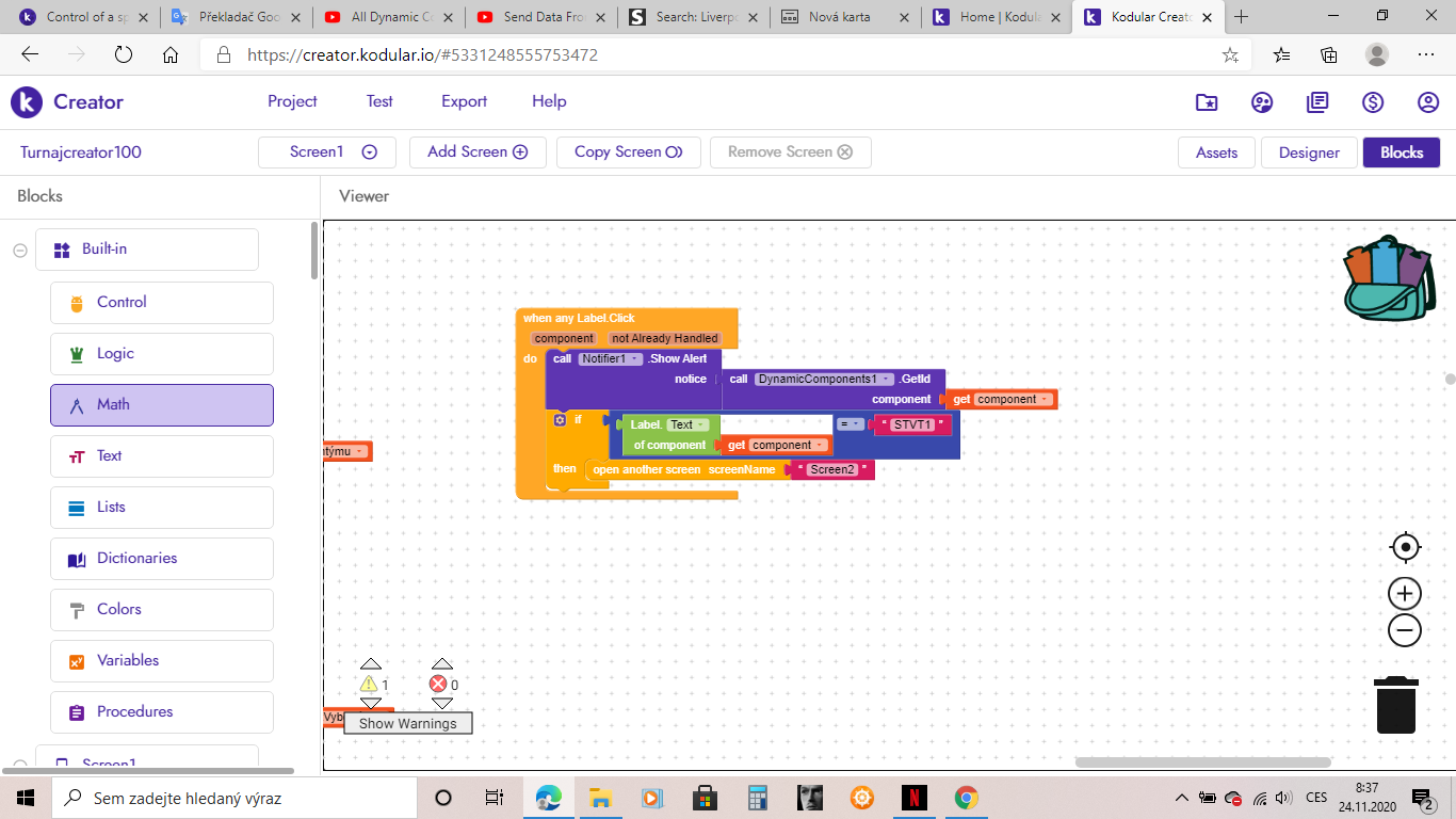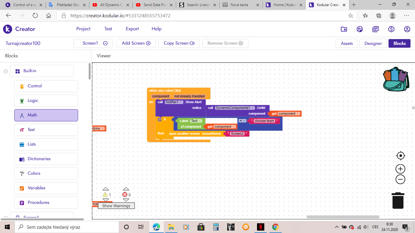 So I redesigned it according to you, but screen2 won’t open for me. I ask, does the label text of component block point to the label text name or to the dynamic label id name? Because the id of the dynamic label is SVTV1, but its text is “choose team”. But if I choose “choose team” instead of SVTV1, screen2 will open any label for me. And I don’t want that.