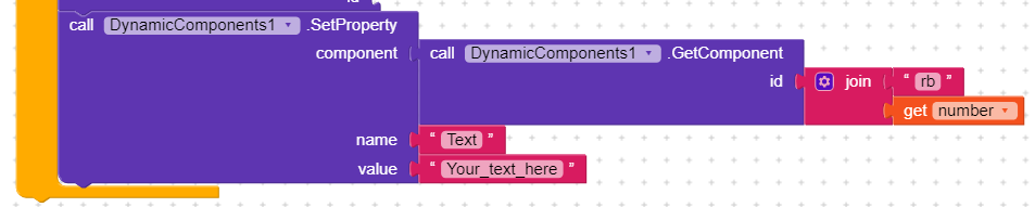 Go to any component , select any radio button, drag set radio button component (use Dyna comp Iâd ) text to ( set text)