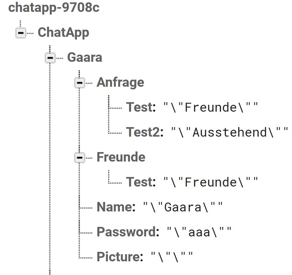 In the picture you have sent, chatapp-9708c is a directory containing sub-directory ChatApp. ChatApp directory contains sub-directories Gaara and …(not seen in picture). Similarly Gaara directory contains sub-directories Anfrage, Fruende, Name, Picture and Password and so on. Hope you are clear with the difference between directory and sub-directory. You can create any directories and sub-directories you want.