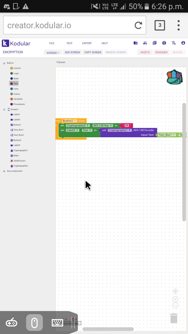 I tried 128 and 256 and I entered the passwords in the designer block, and it does not work for me either.