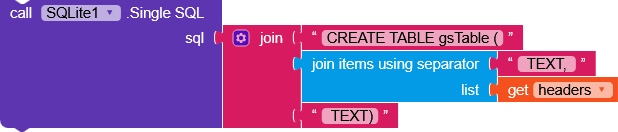 Since this is a very simple database, each column will be of type TEXT, so I joined each header with TEXT, to obtain something like: