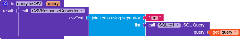 CSVResponseConverter.An SQL query will return a list of elements (headers data) , and we simply join them with a