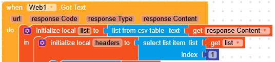 Then, in the Web.GotText we transform the csv response into a list with the appropriate block.