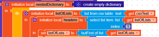 nestedDictionary: which will contain our dictionarylistOfList: which will be our CSV formatted as a list of listsheaders: which will be the first row oflistOfListcontaining the list of column names