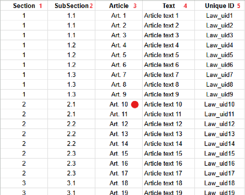 (Section SubSection Article Text Unique ID)