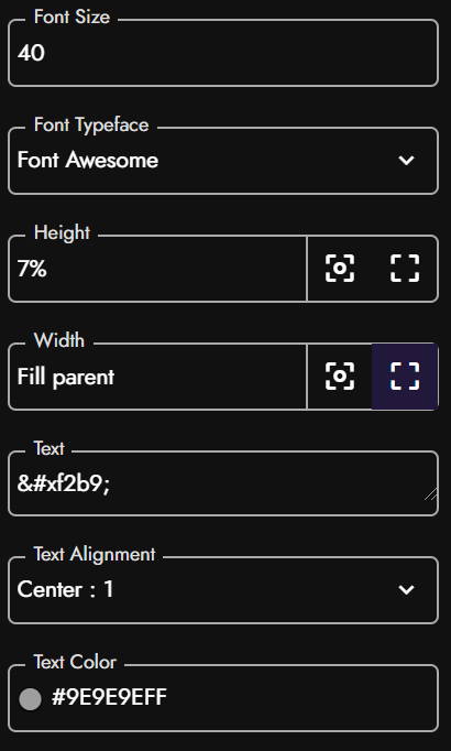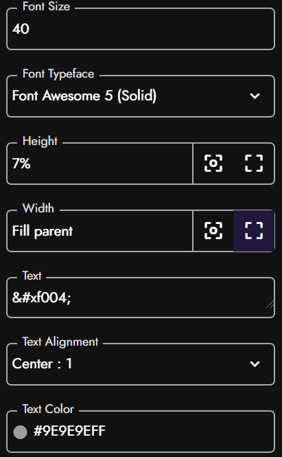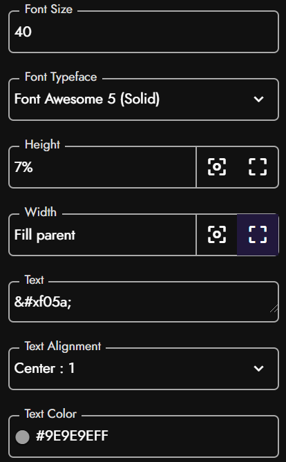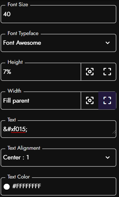 Below are the designer properties of previously mentioned four label. I have used Font awesome for the text of the labels. Also have tweaked some other properties like Font Size and label height.