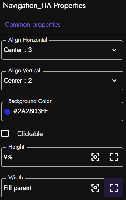 The properties of Home, Profile, Fav, Info labels are as below respectively.