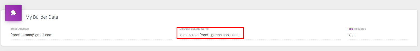 As what we do on the Account is just join io.makeroid.+email+app_name, it’s not a variable we can just edit. When building the app, the builder just selects the email and app name, we can’t change that