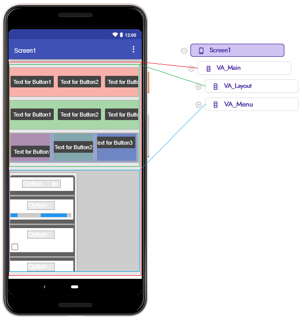 VA_Layout: which will contain our layout or virtual screens.VA_Menu: which will overlap VA_Layout and is where our menu will move freely.
