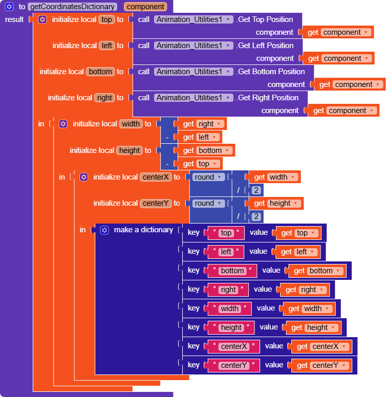 This function will help us obtain a clean dictionary of all the key information for the target where we need to show the dialog, top, left, bottom, right, height, width, centerX, centerY.