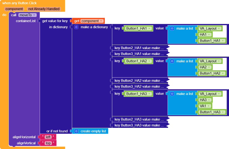 I also created an event for AnyButton in which I made a dictionary with