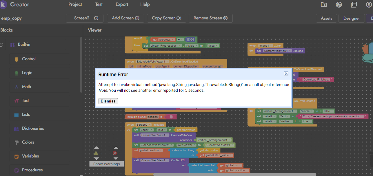 It seems to be an issue with CreateWebView.