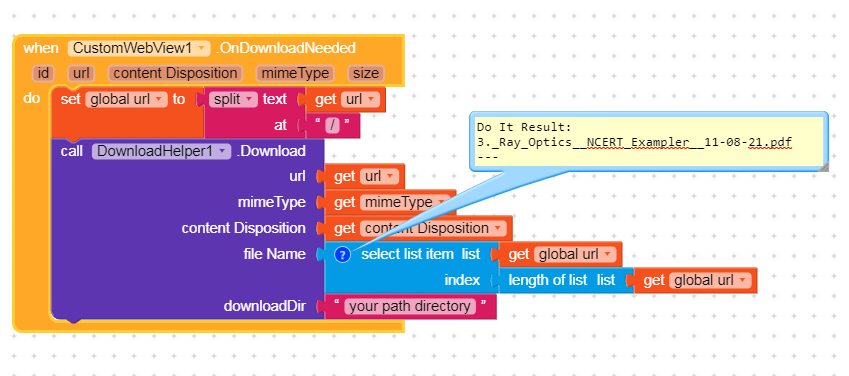This block only returning boolean result and the id, but how can i load a new window with the URL?