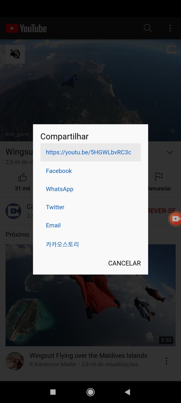 When the user is watching the video and clicks on share the video (youtube screen), the message in the photo below appears, but the sharing options do not work.