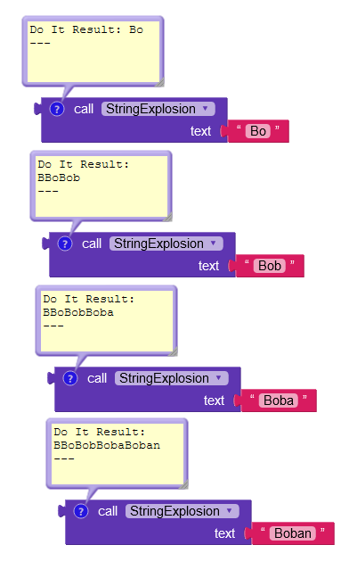 stringExplode(Code) → CCoCodCode (transformation is like this: C, Co, Cod, Code)