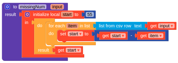 Input is a string like 1,2,3,4,5,6,8,9,10 result is 7.