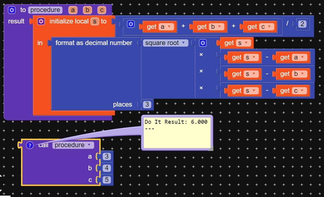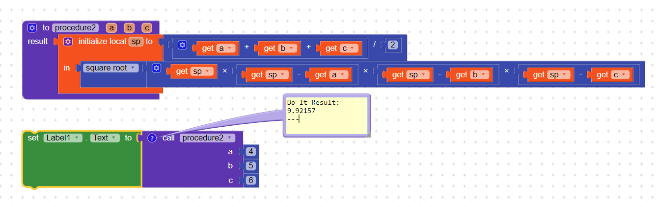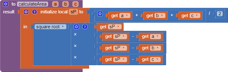 So actually, today’s challenge will be, to make a procedure that, if three sides of a triangle are given (and nothing else), returns the surface.